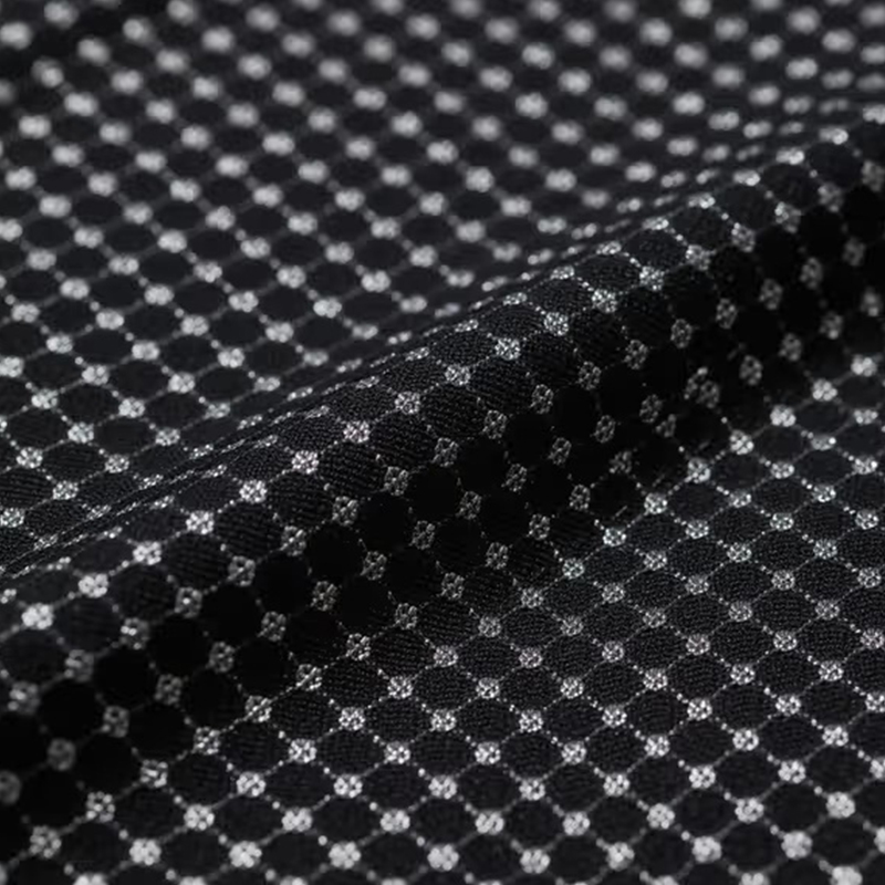 Dot Mesh Birdseye Cloth využíva jedinečnú štruktúru bodkovaných otvorov. V porovnaní s tradičnou látkou z vtáčej perspektívy sú dierky látky z bodkovanej sieťoviny jemnejšie a pravidelnejšie. Tento inovatívny dizajn výrazne zlepšuje priedušnosť a funkciu potenia látky, vďaka čomu je cirkulácia vzduchu hladšia a pot sa rýchlo odparuje, takže nositeľ zostáva v suchu a pohodlí. Či už pri namáhavom cvičení alebo v horúcom počasí, tkanina z bodkovanej sieťoviny vtáčieho oka môže účinne zabrániť zadržiavaniu potu a poskytnúť ideálny pohodlný zážitok. Vďaka svojej priedušnosti a schopnosti absorpcie vlhkosti a potu je tkanina dot mesh vtáčie oko veľmi vhodná na výrobu športového oblečenia, letného oblečenia a každodenného bežného nosenia. Ľahká textúra a príjemný dotyk z bodkovej sieťoviny z vtáčej tkaniny z nej robí ideálnu voľbu na dlhodobé nosenie, vhodnú pre športových nadšencov a ľudí, ktorí milujú outdoorové aktivity. Či už ide o športové vybavenie, ako je bežecké oblečenie, nohavice na jogu, fitness oblečenie alebo ľahké oblečenie, ako sú letné tričká a šortky, tkanina s vtáčím okom z bodkovanej sieťoviny môže poskytnúť maximálny komfort a vyhnúť sa nepohodliu spôsobenému dlhodobým cvičením alebo nosením vo vysokých teplotách.
